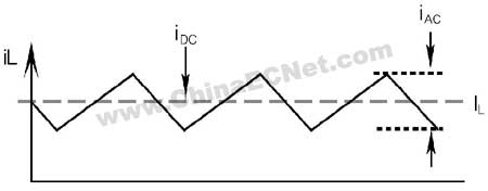 更仔细的观察这个设计中的储能元件可以发现一些有趣的观点。通过电感的电流可以看作既是交流也是直流元件。考虑SMPS的电感在连续模式中工作的情况 (通过电感的电流波形参见图3)。 在这个应用中直流元件特别令人关注。因为电流是关键参数,所以调节电流并向负载提供是这个电路的主要目标。还应该记住把交流元件减到最小的目标。